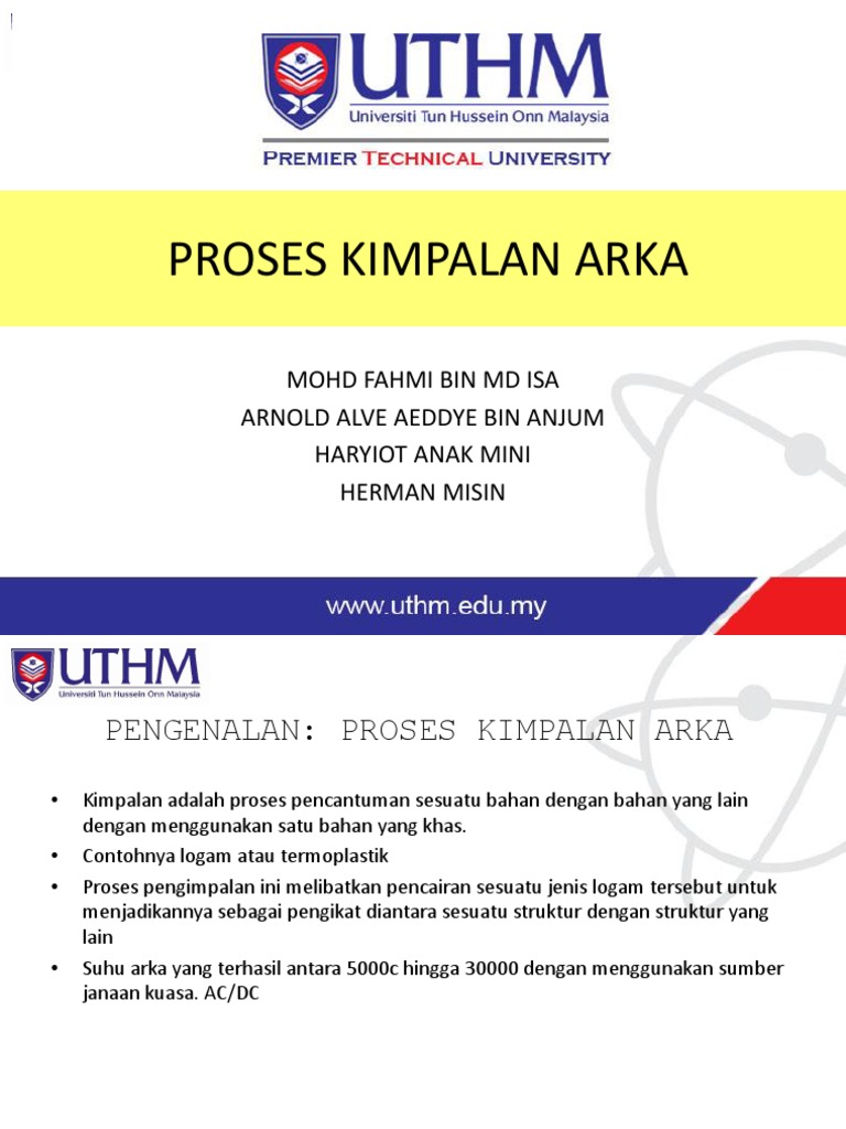 Bidang proses kimpalan arka kepingan logam (shielded metal arc welding). Proses kimpalan dan pemotongan arka plasma. Penyambungan logam bermaksud dua logam disambung antara satu sama lain. Workshop.آ lakarkan proses kimpalan arka dengan gambarajah yang sesuai. Sekolah menengah vokasional arau kimpalan arka nama :